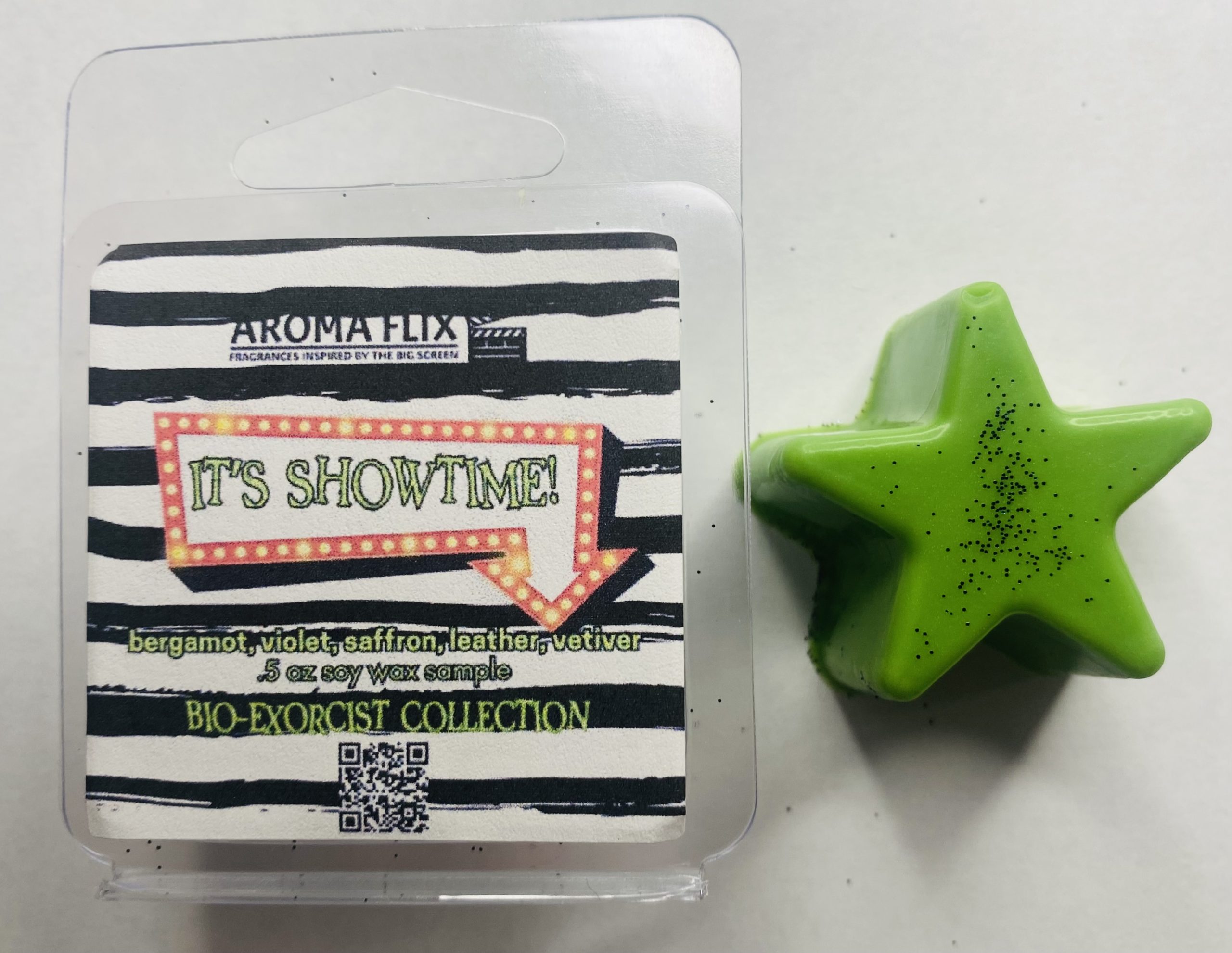 This is the pivotal moment when Betelguese is summoned by Lydia to help her ghostly friends, the Maitlands. Taking center stage while unleashing his chaotic and comedic antics, which showcases his unique blend of humor and supernatural abilities, this scene highlights the character’s unpredictable nature and the film’s darkly comedic tone. This luxurious fragrance combines sweet notes of bergamot and violet, paired with a rich, earthy base of saffron, leather, and vetiver. Each scent sample is approximately .5 ounces.