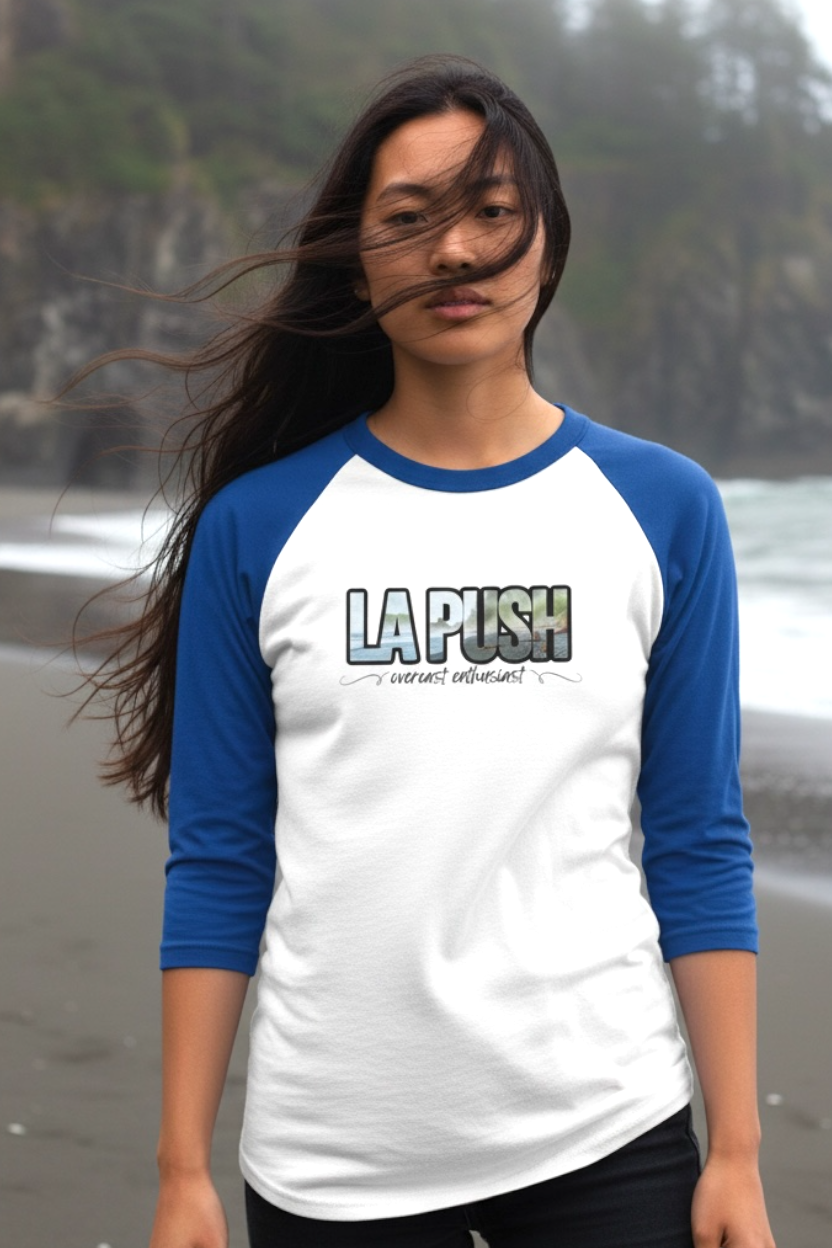 For the ones who feel most at home under a sky the color of secrets, this “Overcast Enthusiast” (La Push edition) tee captures the quiet electricity of the Pacific Northwest coast. The design features 3/4 length sleeves and La Push beach framed inside bold block letters. Perfect for anyone who prefers their beaches windswept, their conversations cliff-side, and the kind of weather that feels like a mood rather than a forecast.