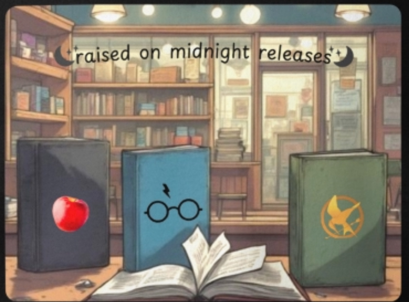 This design celebrates the golden age of lining up outside bookstores, clutching wristbands, swapping theories with strangers, and feeling the electric buzz of a new world about to open at 12:01. It’s for the readers who grew up on foggy parking lots, paperbacks that smelled like ink and possibility, and the kind of communal excitement the internet could never replicate—a nostalgic nod to the early‑2000s fandom frenzy that shaped a generation.